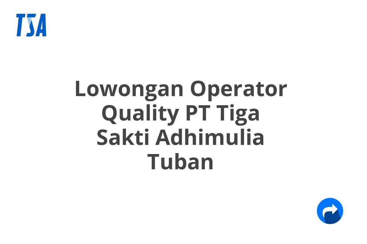 Saat ini, PT Tiga Sakti Adhimulia Tuban sedang membuka lowongan kerja untuk posisi Operator Quality di Tuban.