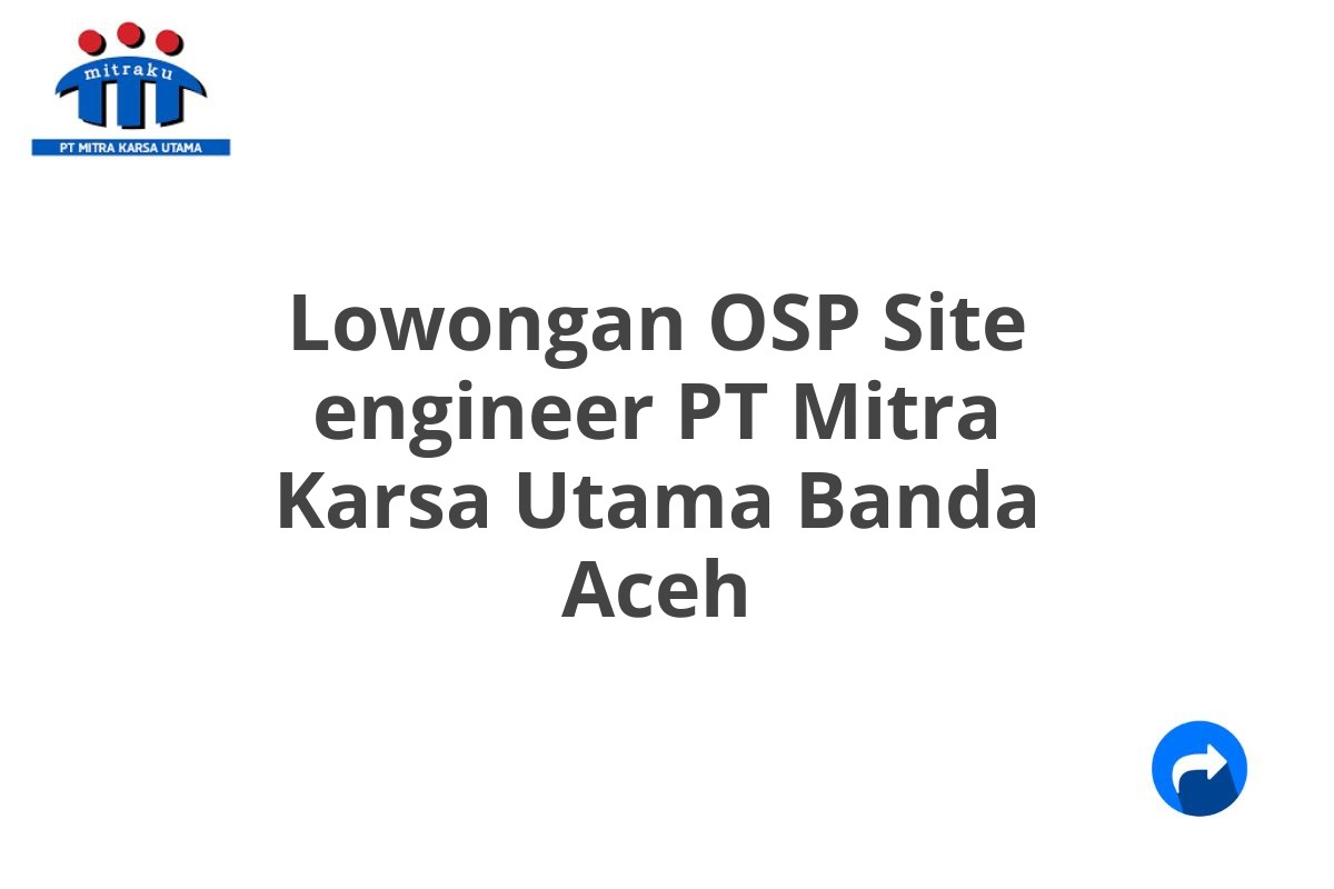 Saat ini, PT Mitra Karsa Utama sedang membuka lowongan kerja untuk posisi OSP Site Engineer di Banda Aceh. Ini adalah kesempatan bagus untuk Anda yang memiliki passion di bidang teknologi dan ingin berkontribusi dalam membangun infrastruktur telekomunikasi yang handal.