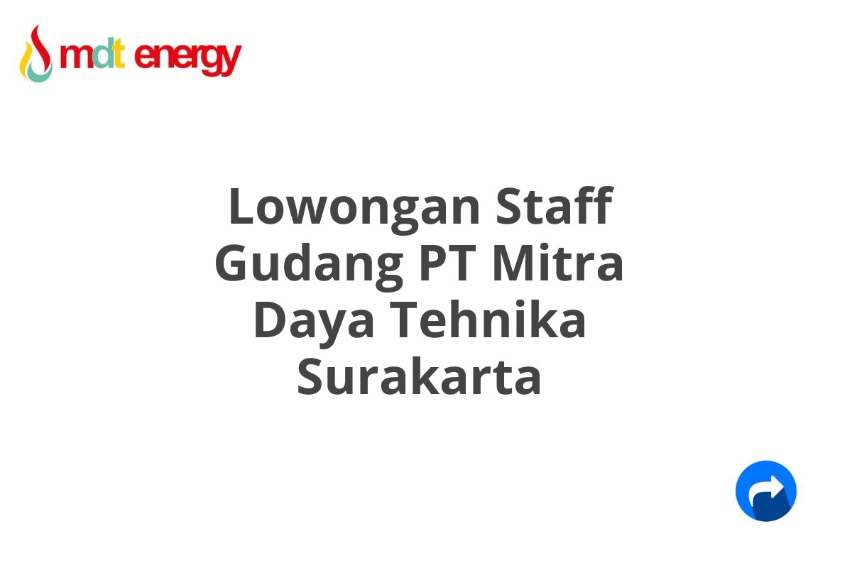 Lowongan Staff Gudang PT Mitra Daya Tehnika Surakarta Terbaru 2026