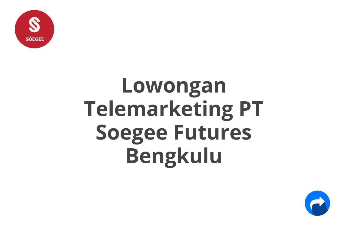Lowongan Telemarketing PT Soegee Futures Bengkulu Tahun 2026