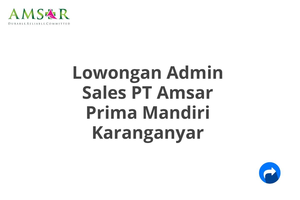 Saat ini, PT Amsar Prima Mandiri sedang membuka lowongan kerja untuk posisi Admin Sales yang berlokasi di Karanganyar.