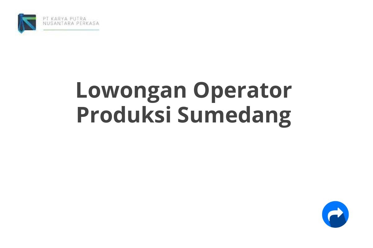 Saat ini, PT Karya Putra Nusantara Perkasa sedang membuka lowongan kerja untuk posisi Operator Produksi di pabrik kami yang berlokasi di Sumedang.