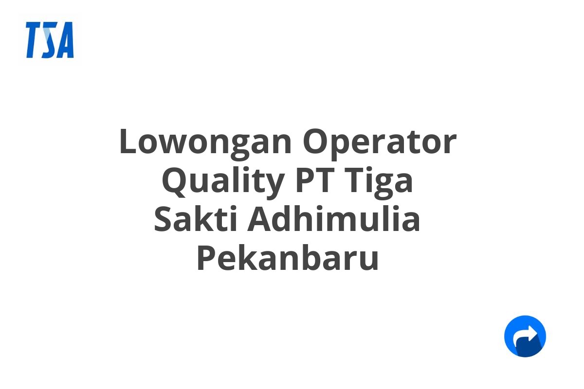 Mimpi karier gemilang di perusahaan terkemuka di Pekanbaru? Kesempatan emas kini terbuka lebar! PT Tiga Sakti Adhimulia, perusahaan ternama di bidangnya, sedang mencari kandidat terbaik untuk posisi Operator Quality. Simak detail lowongan dan raih peluang sukses Anda!