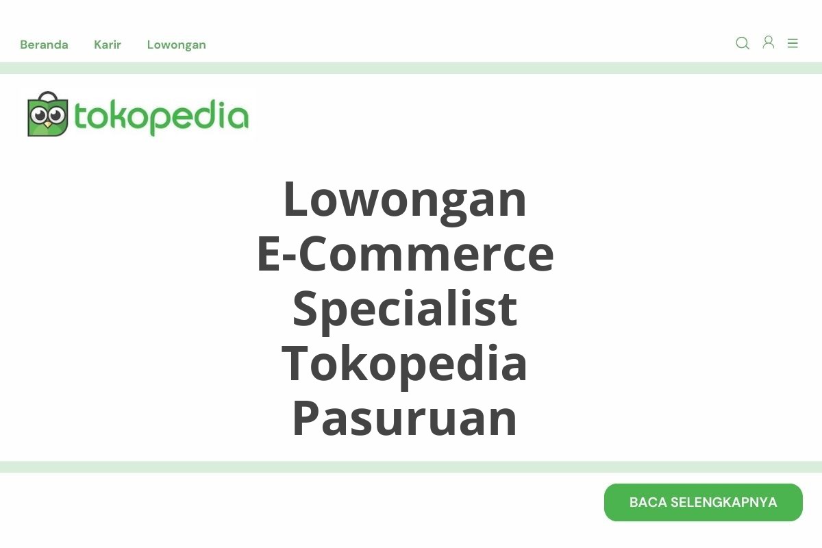 Lowongan E-Commerce Specialist Tokopedia Pasuruan