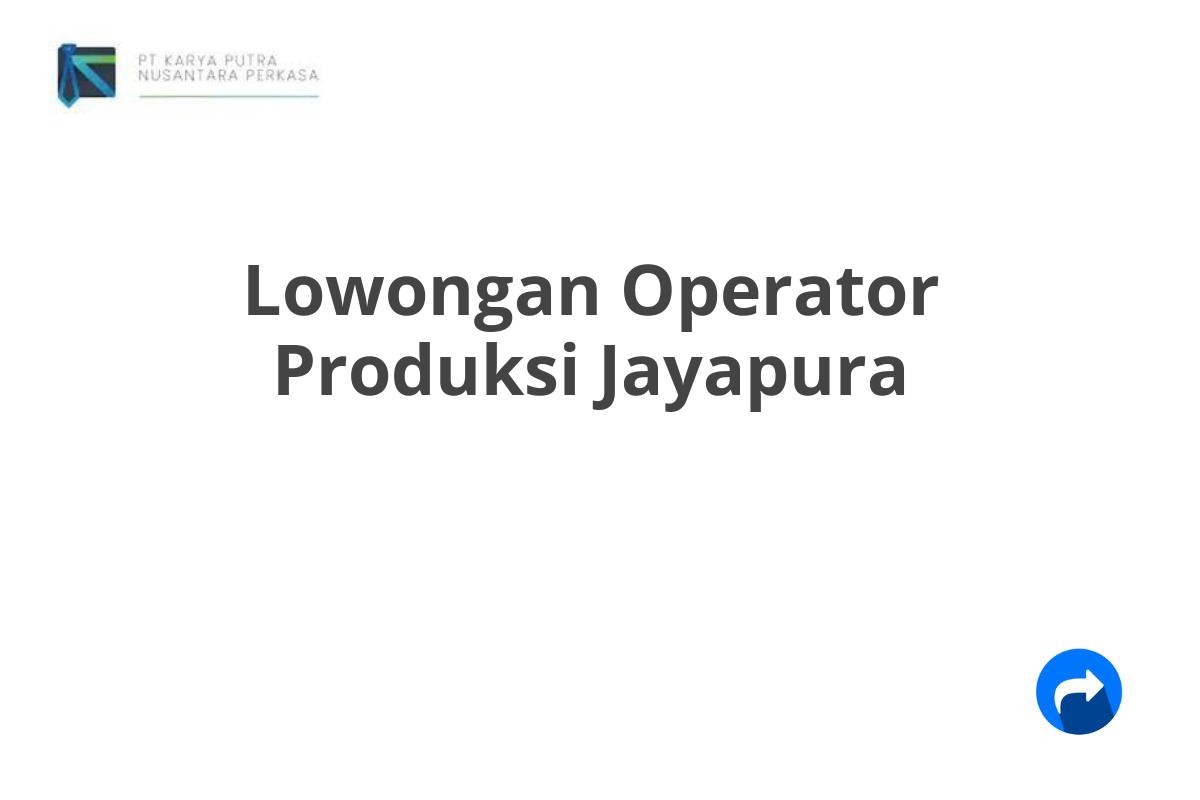Saat ini, PT Karya Putra Nusantara Perkasa sedang membuka lowongan kerja untuk posisi Operator Produksi di Jayapura.