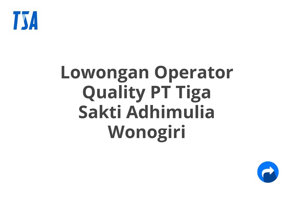 Lowongan Operator Quality PT Tiga Sakti Adhimulia Wonogiri