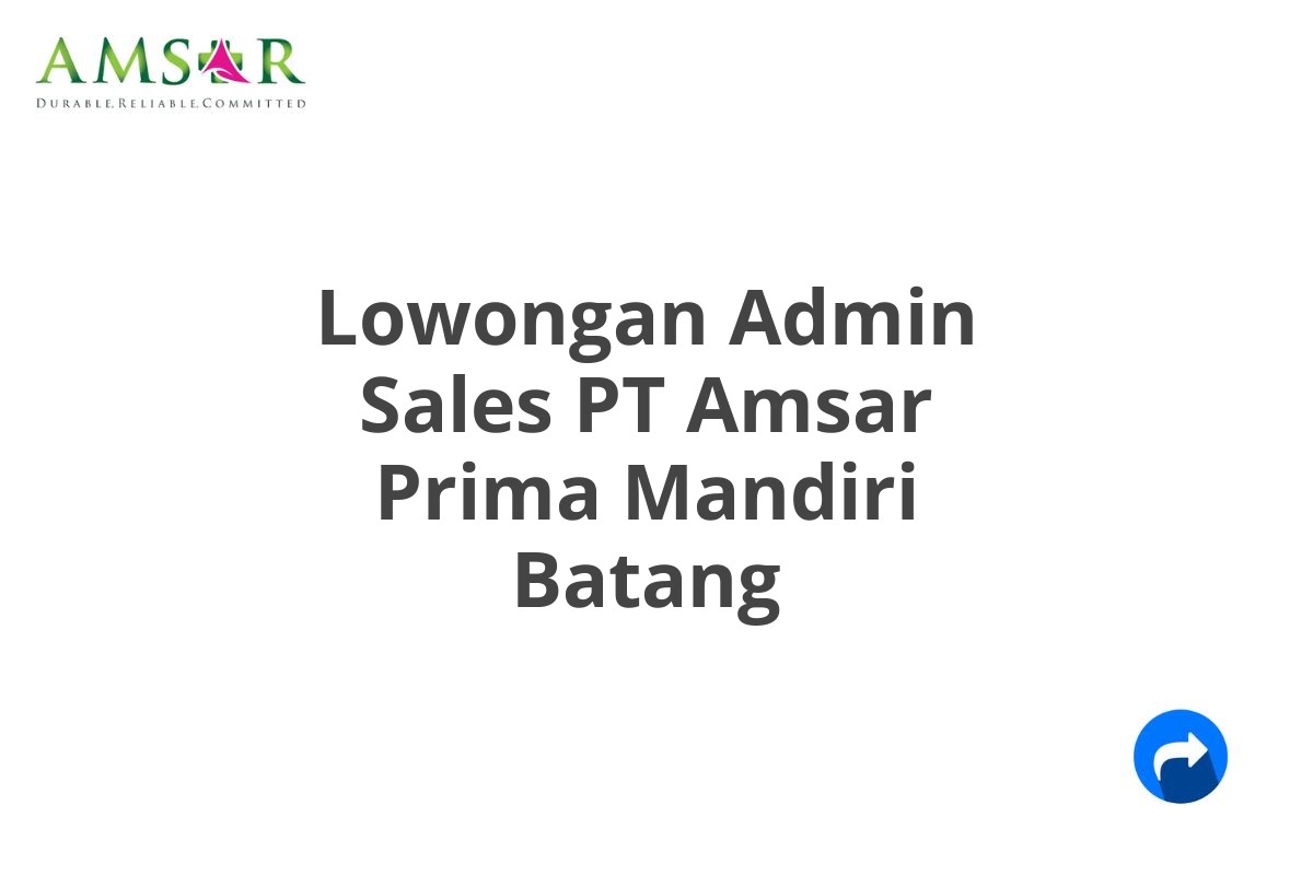 Saat ini, PT Amsar Prima Mandiri sedang membuka lowongan kerja untuk posisi Admin Sales yang berlokasi di Batang.