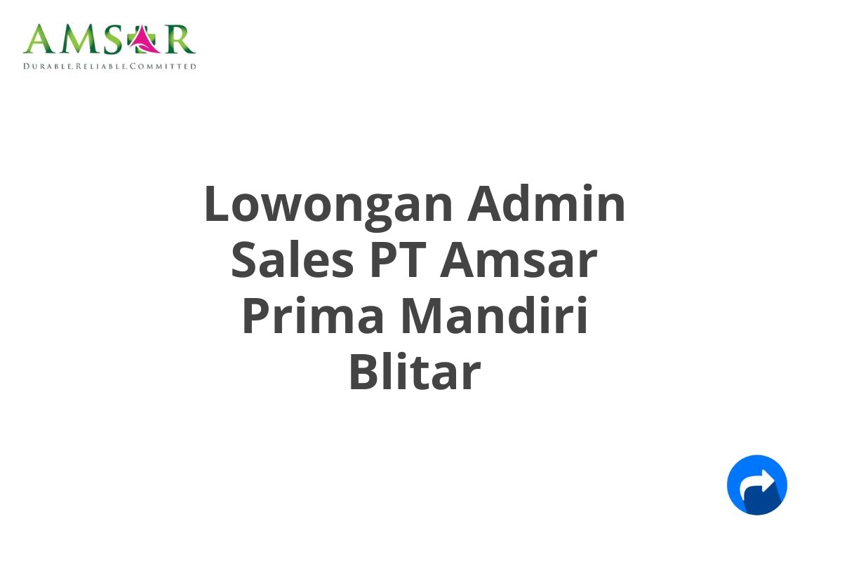 Saat ini, PT Amsar Prima Mandiri sedang membuka lowongan pekerjaan untuk posisi Admin Sales yang berlokasi di Blitar.