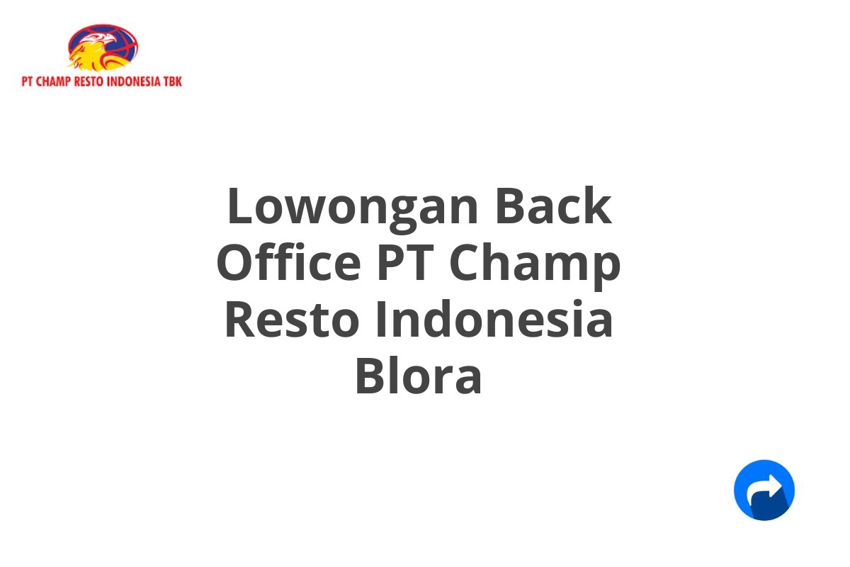 Lowongan Back Office PT Champ Resto Indonesia Blora Terbaru [Cepat]
