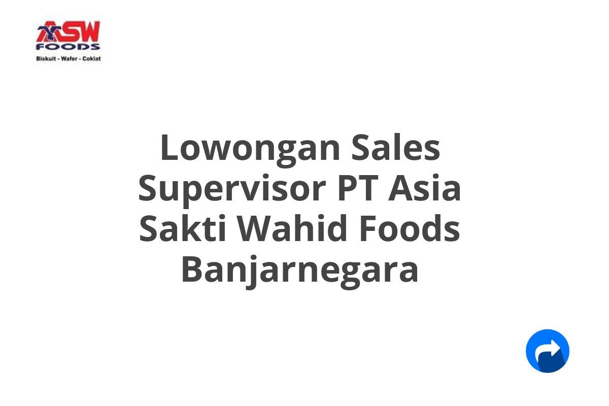 Saat ini, ASW Foods sedang mencari kandidat yang berpotensi dan berpengalaman untuk mengisi posisi Sales Supervisor di kantor cabang Banjarnegara.