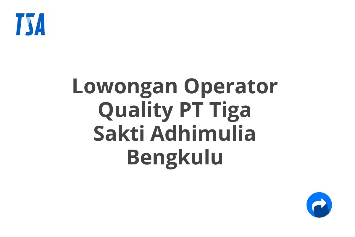 Lowongan Operator Quality PT Tiga Sakti Adhimulia Bengkulu