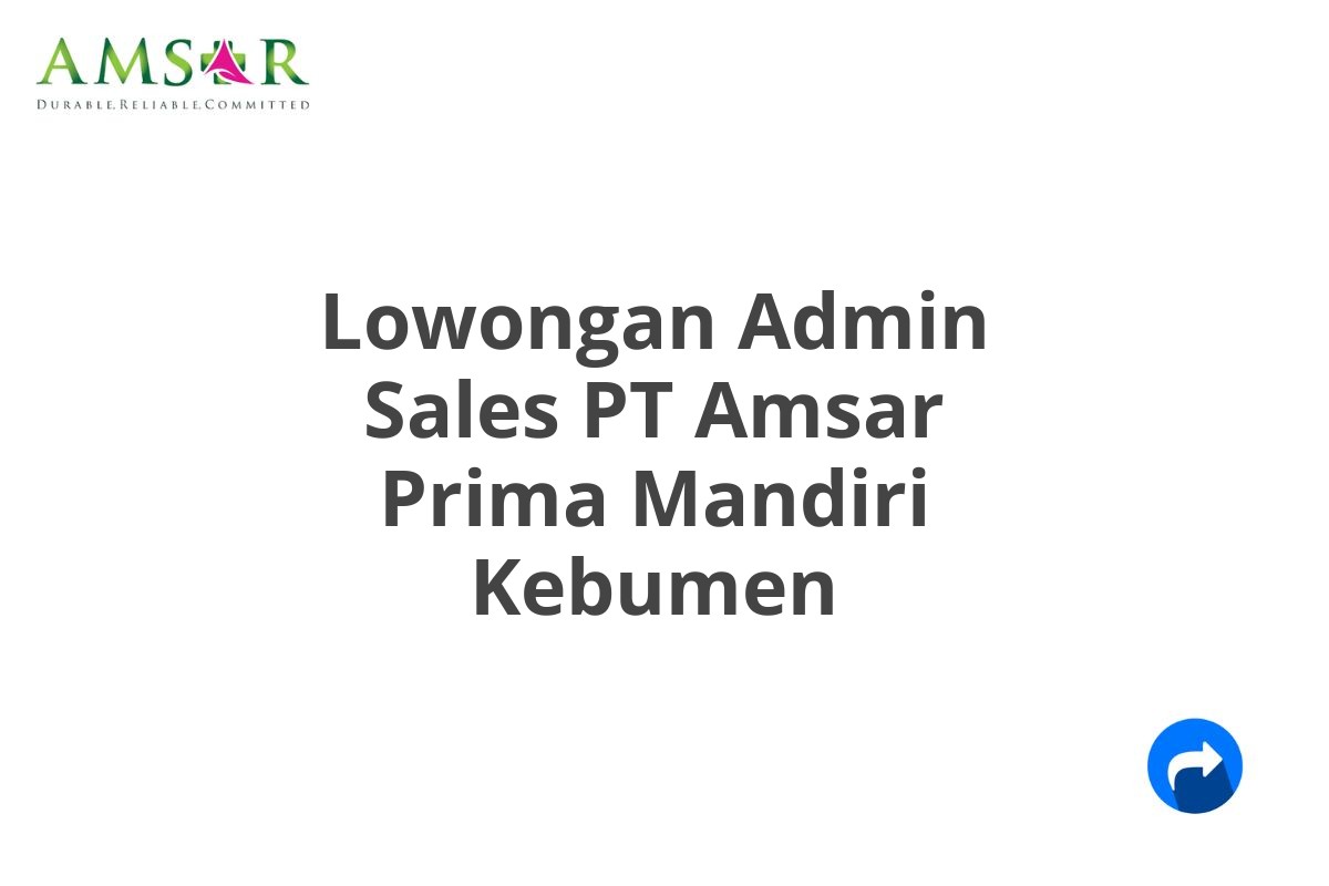 Saat ini, PT Amsar Prima Mandiri sedang membuka lowongan kerja untuk posisi Admin Sales yang berlokasi di Kebumen.