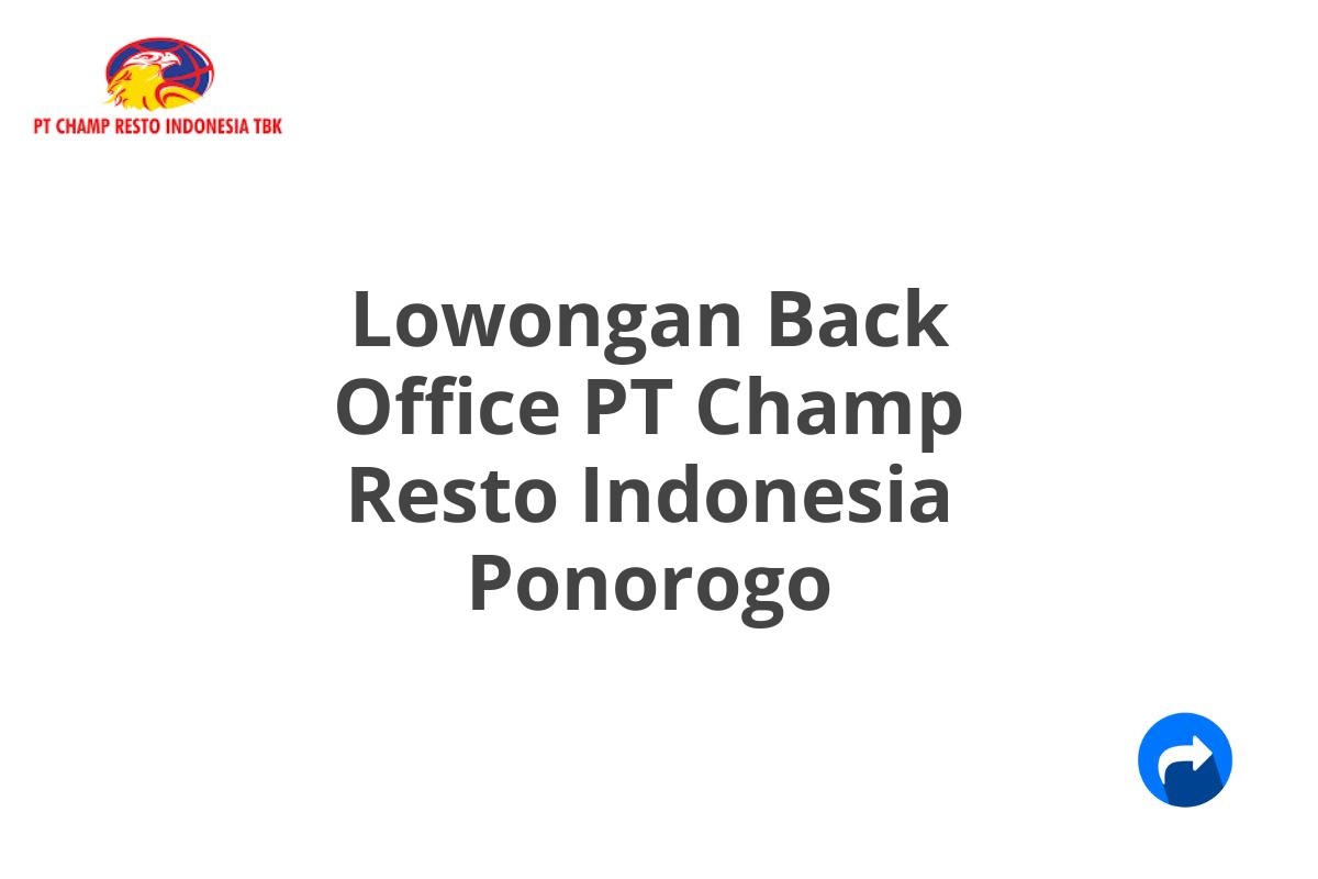 Lowongan Back Office PT Champ Resto Indonesia Ponorogo Tahun 2026 [Resmi]