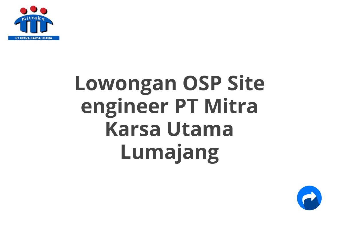 Lowongan OSP Site Engineer PT Mitra Karsa Utama Ponorogo Mimpikan karier yang stabil